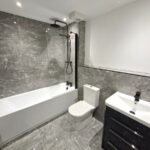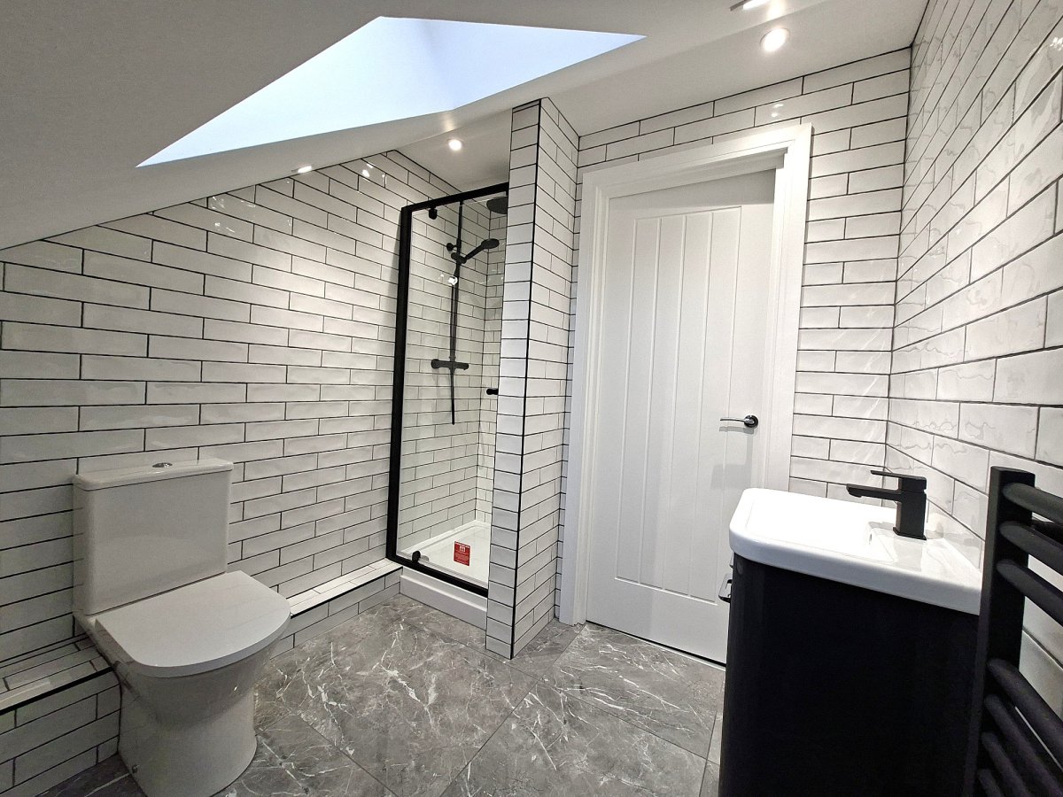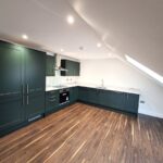 Internally the property features two spacious double bedrooms, one with a luxurious en-suite, and modern bathrooms with high-quality fixtures, both with showers. The large open-plan kitchen and living area offers integrated appliances